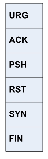Flags 6 bit Mengindikasikan flag-flag TCP yang memang ada enam jumlahnya, yang terdiri atas: URG (Urgent), ACK (Acknowledgment), PSH (Push), RST (Reset), SYN (Synchronize), dan FIN (Finish).
