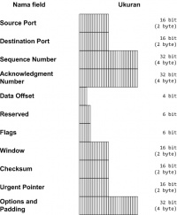 Format header TCP, dilengkapi dengan ukuran setiap field-nya