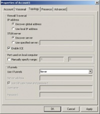 Set the parameters under the Topology tab to determine how SJPhone works with NAT/Firewall