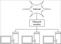 Gambar 6.10: Dengan memasukkan sebuah server monitor jaringan di antara LAN dan koneksi Internet anda, anda bisa mengamati semua trafik jaringan.