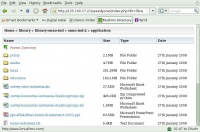Bagi anda yang berada di jaringan komputer lokal dan mengaktifkan fasilitas Network Neighbourhood, kita dapat dengan mudah melihat file yang ada di berbagai folder di komputer lain menggunakan Web browser dengan alamat smb://alamat-ip-komputer. Perhatikan alamat yang digunakan adalah smb:// bukan http:// yang biasa digunakan di Web. Menggunakan alamat smb://alamat-ip-komputer kita dapat mengakses folder di komputer lain. Dalam gambar di perlihatkan kita mengakses file pada komputer smb://192.168.0.1/