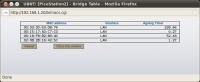 Tampilan tabel Bridge, terlihat MAC address peralatan yang tersambung di masing2 interface