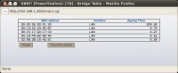 Tampilan tabel bridge memperlihatkan MAC Address, interface yang di lalui dan umur / waktu