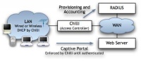 Sebuah client / laptop akan tersambung ke Interface ini akan di batasi oleh "walled garden" sampai di authorisasi. Client / laptop hanya akan dapat memperoleh DNS dan WebSite yang sudah di-approved oleh "walled garden". Authentikasi (dan authorisasi) di CoovaChilli akan dilakukan menggunakan salah satu dari dua cara berikut. Apakah itu menggunakan MAC based authentication (menggunakan pilihan macauth di chilli.conf) atau menggunakan cara "Universal Access Method" (UAM). Metoda yang ke dua menggunakan captive portal yang akan menginisiasi proses authentikasi. Saat sebuah client yang tidak ter-authentikasi berusaha untuk mengakses Web (pada port 80), permohonan untuk menyambung ke Web akan di tangkap oleh CoovaChilli dan akan di redirect ke captive portal. Dalam kasus kita, kita akan menggunakan sebuah perl-script dengan nama hotspotlogin.cgi (yang di jalankan oleh apache melalui https).